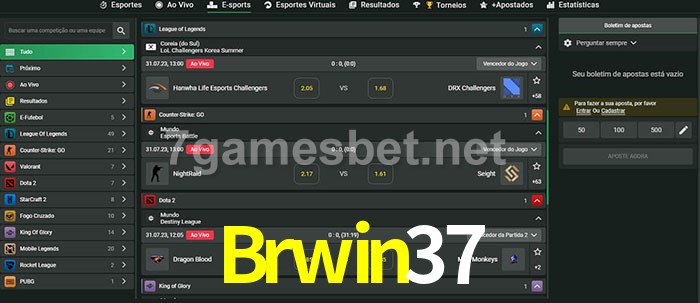 O Brwin37 oferece uma grande seleção de opções de apostas em e-sports com probabilidades competitivas